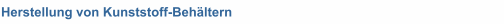 weitere Kunststoff-Behälter, zum Beispiel:· Behälter für den Anlagenbau, die Schwimmbadtechnik und zur Wasseraufbereitung· Behälter, Fässer und Kanister für die chemische Industrie, Labor und Wissenschaft